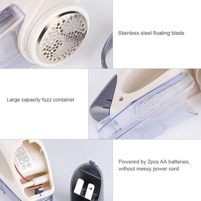 • 【أضف حياة جديدة إلى الملابس القديمة】: شفرات عائمة من الفولاذ المقاوم للصدأ تتجنب إتلاف ملابسك، كما أن الشبكات ذات الأحجام المختلفة تجعل من السهل إزالة الزغب على السترات والقمصان والسراويل والمزيد.